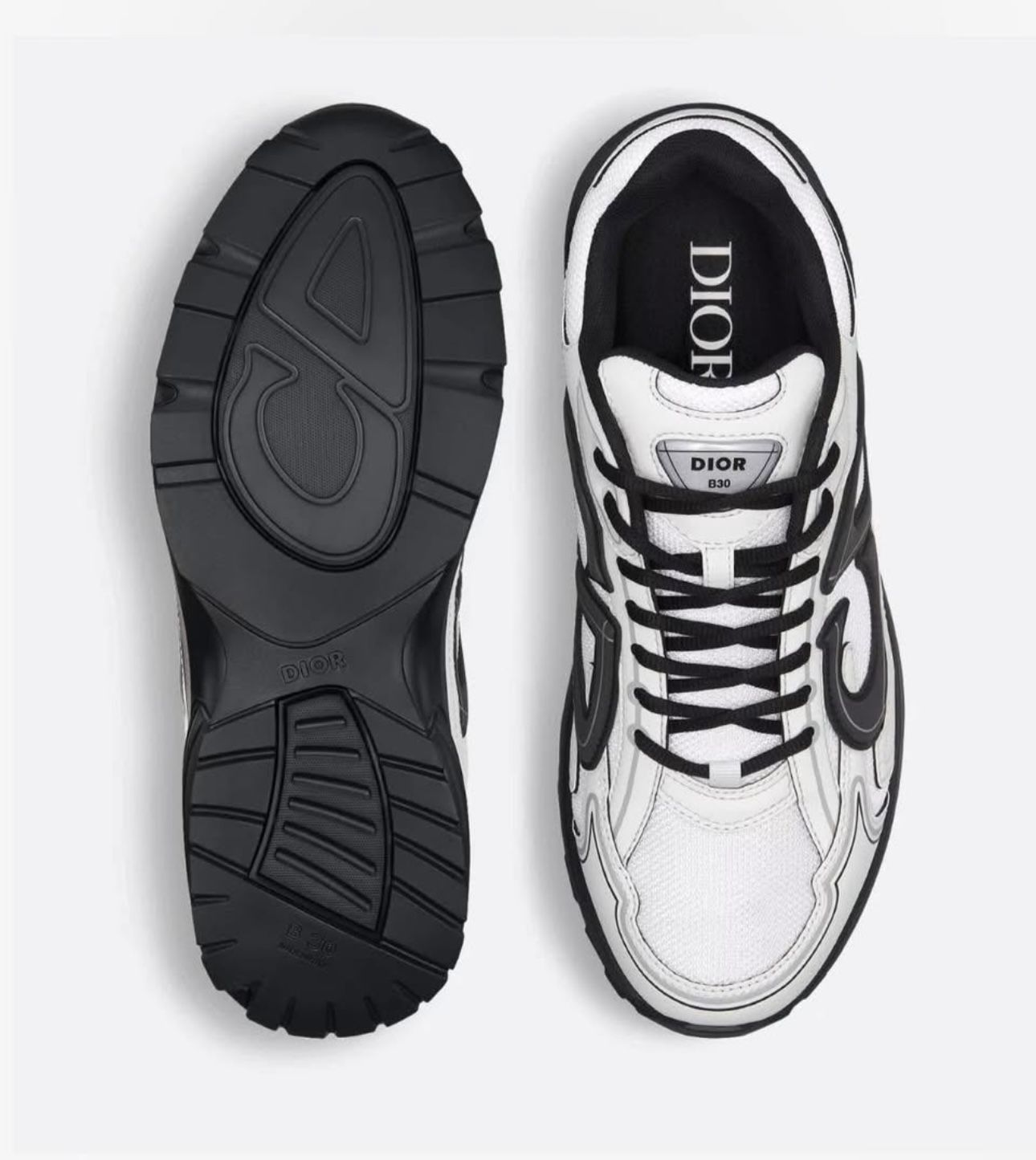 The B30 Countdown sneaker is a new House essential, distinguished by its modern and sporty low-top silhouette. Crafted in white technical mesh and white technical fabric, it is enhanced by a reflective black CD30 signature with a graphic aesthetic. The B30 Countdown also features silver-tone Dior B30 and CD30 signatures on the tongue and back. A sculpted and ultralightweight rubber sole spotlights various hallmark details, while elastic on the interior provides optimal comfort. The B30 Countdown sneaker will complete any casual outfit.