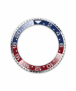 Bidirectional rotatable 24-hour graduated bezel. Two-colour red and blue Cerachrom insert in ceramic, moulded numerals and graduations