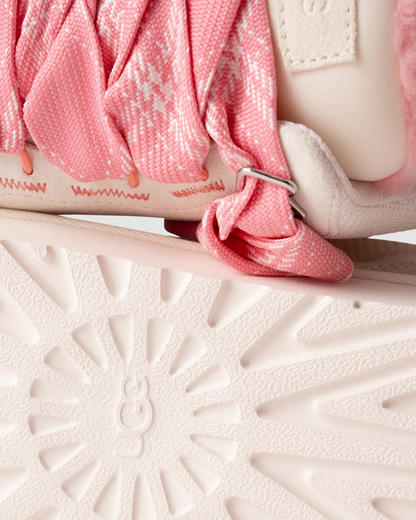 With the ease of a sneaker and the comfort of a slipper, our Lo Lowmel Biarritz is all about impeccable vibes. ​This newcomer to our Lowmel family features a lower profile that begs for wide-leg jeans, ’90s jams, and seaside hangs. The upper features textured hairy suede and stacked flat laces that can be worn loose for that quintessential sneaker style. On the bottom, you’ll find our springy sugarcane EVA outsole that offers the signature Feel of UGG® and makes these feel extra light on the foot.