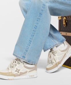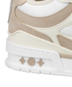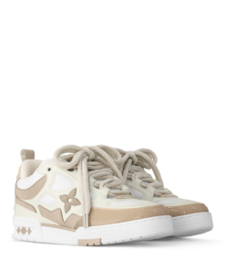 The LV Skate sneaker references a Nineties-inspired design first seen at Louis Vuitton’s Fall-Winter 2022 men’s show. Its elaborate, bicolor upper with Monogram Flower detailing combines technical mesh, calf leather and suede. This model is notable for its padded collar, technical double laces and bicolor rubber outsole decorated with Monogram Flowers.